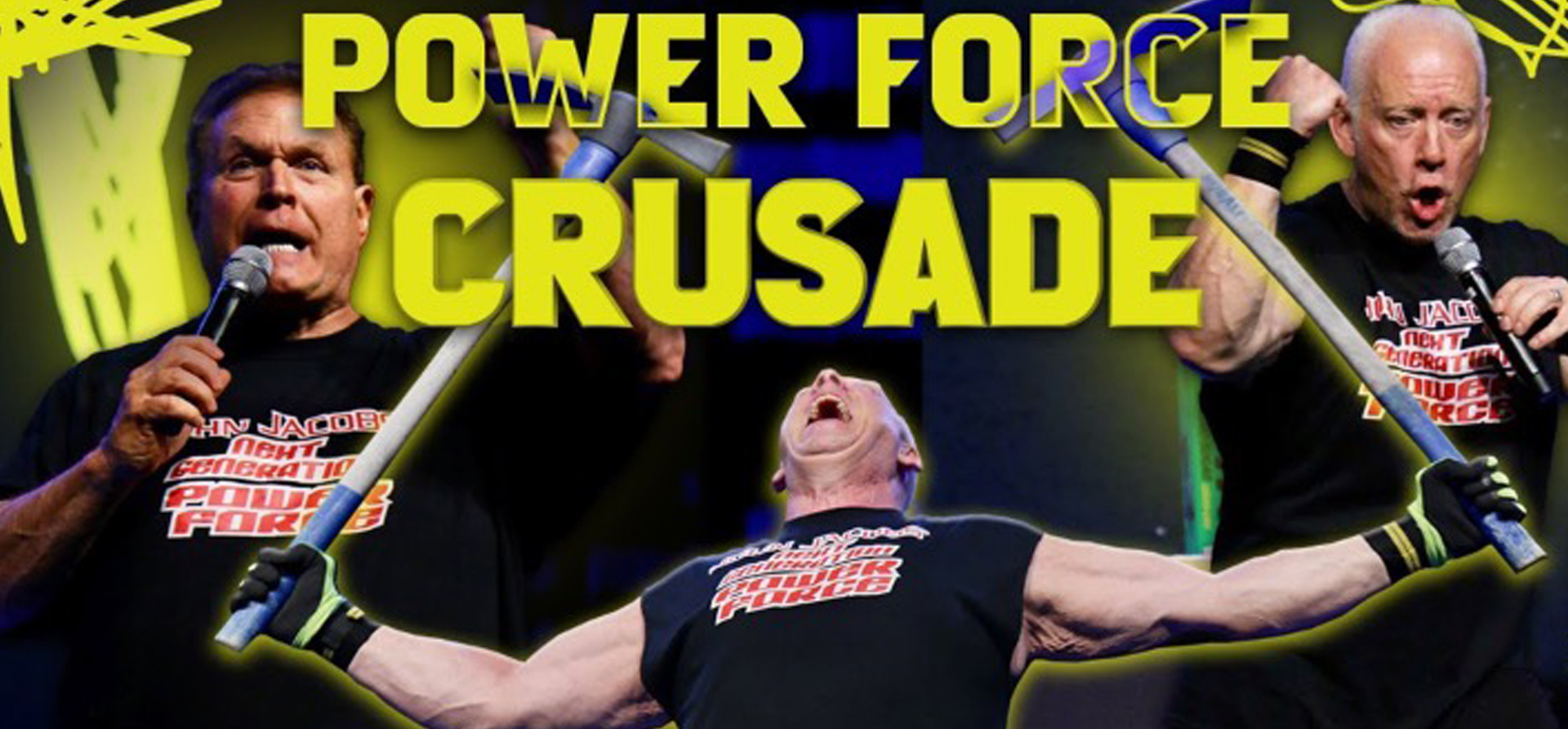 John Jacobs founded The Power Team in the 1990s, which was a team of evangelists who used feats of strength to attract audiences and then preached the gospel. The Power Team won thousands of people to the Lord, and they were especially popular with young people. Today, John Jacobs and his ministry partner Steve Carrier are still at it, somehow still performing many of those same amazing feats of strength and still preaching a strong evangelistic message that is impacting generations. Preferring small venues these days, John Jacobs will prime the pump in the morning service at 10:30 by preaching a strong message of faith, and then that evening at 6:30, John and Steve will perform various feats of strength and then follow up with an evangelistic message. Bring your unsaved friends and loved ones!